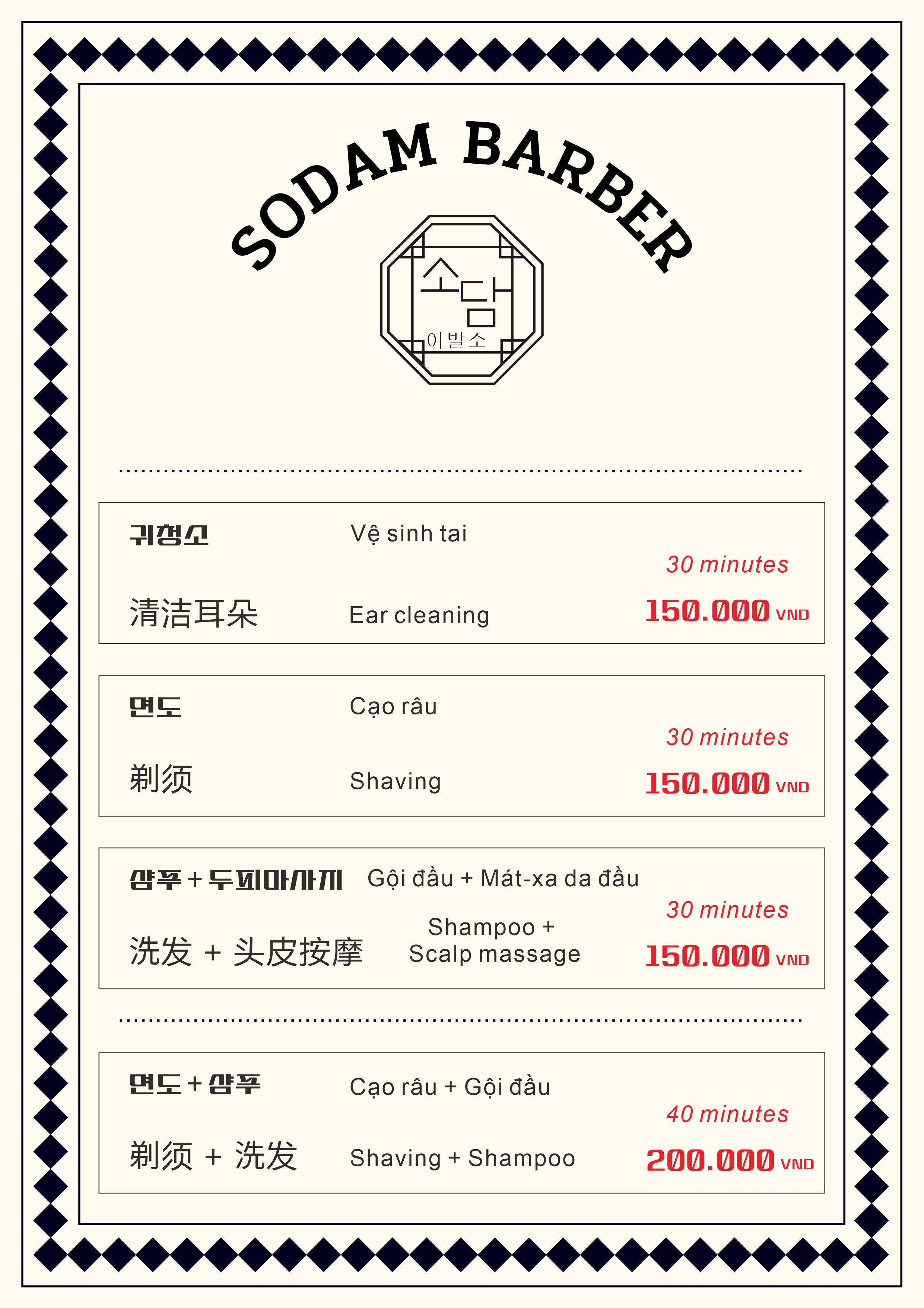 면도 + 샴푸 40분 – 20만동